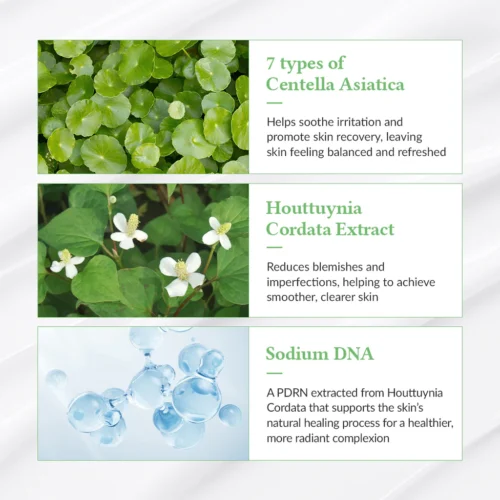• گیاه Houttuynia Cordata: خاصیت ضد التهاب و آرام‌بخش پوست‌هایی که دچار قرمزی یا تحریک شده‌اند